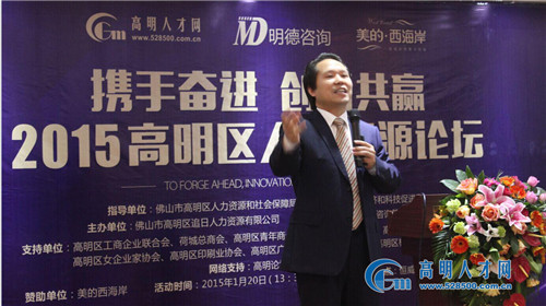 2015年1月20日,由高明人才网主办的“2015高明区人力资源论坛”在高明恒威大酒店隆重举行,邀请著名管理顾问导师、资深人才管理专家、国内最具人气人力资源专家做嘉宾演讲,邀请高明区300多位企业家和HR精英参会。